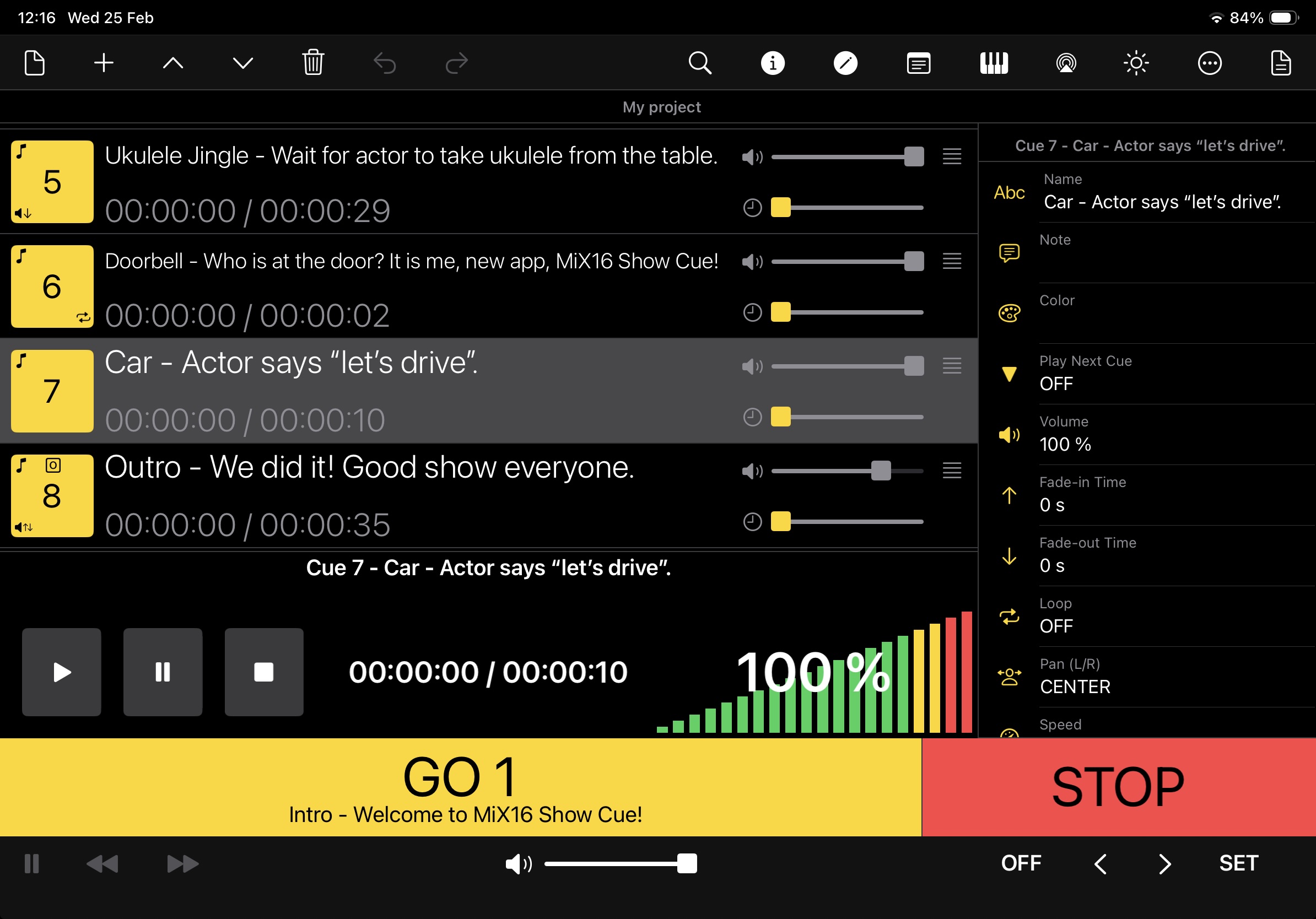 MiX16 Show Cue Pro and Lite are commercial applications for iPadOS, iOS and macOS created by Gregor Krasevec.