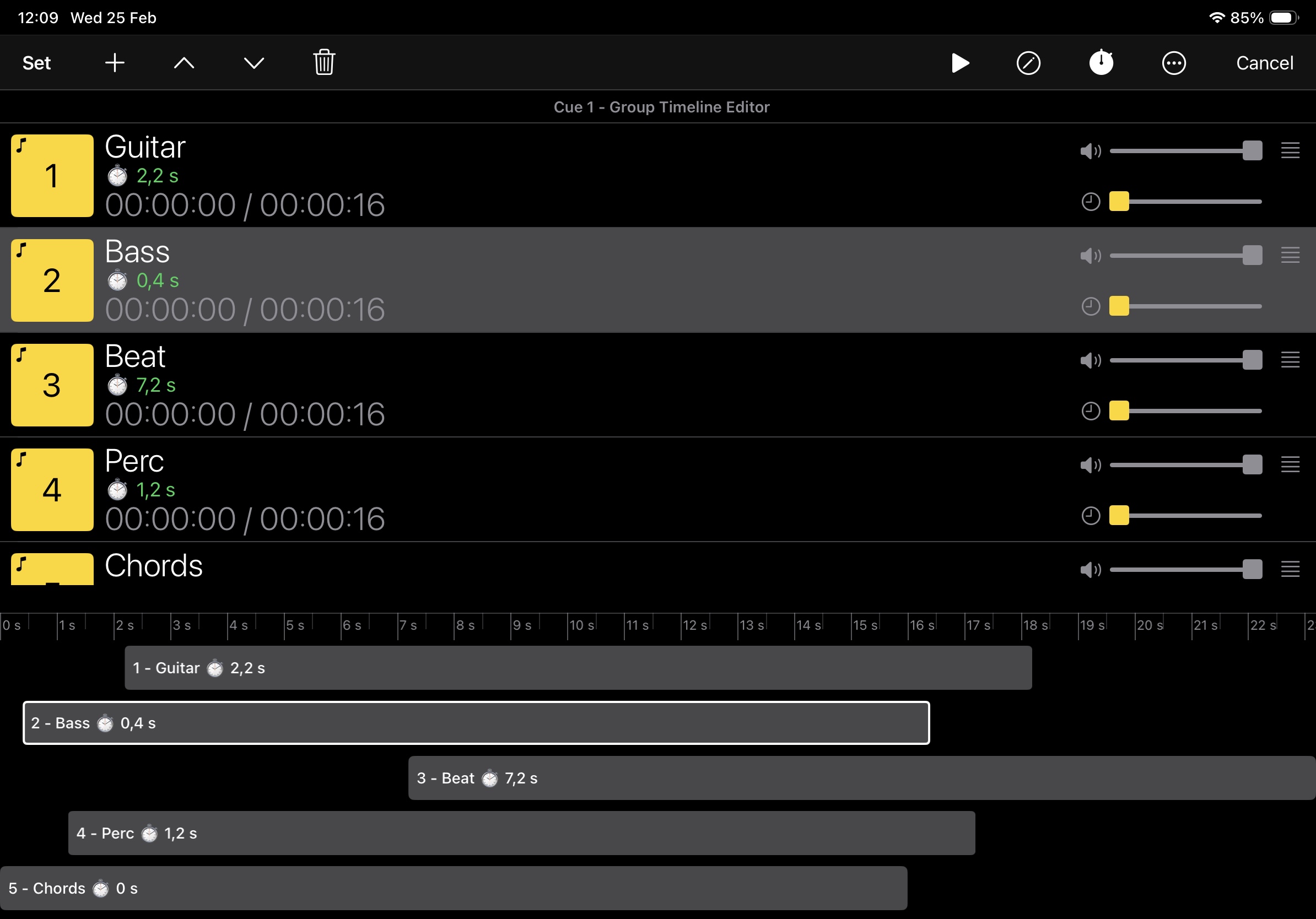 Industry standard playing properties can be set to each multimedia cue: volume, fade-in time, fade-out time, loop and pan.*